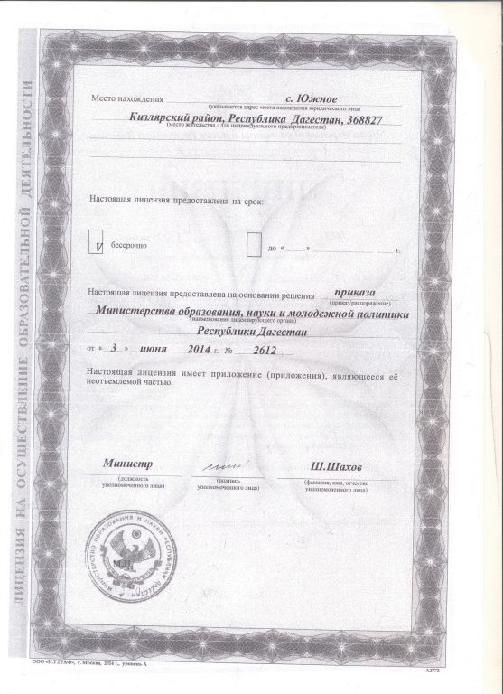 368827, Республика Дагестан, Кизлярский район, с.Южное, ул.Школьная 65,
